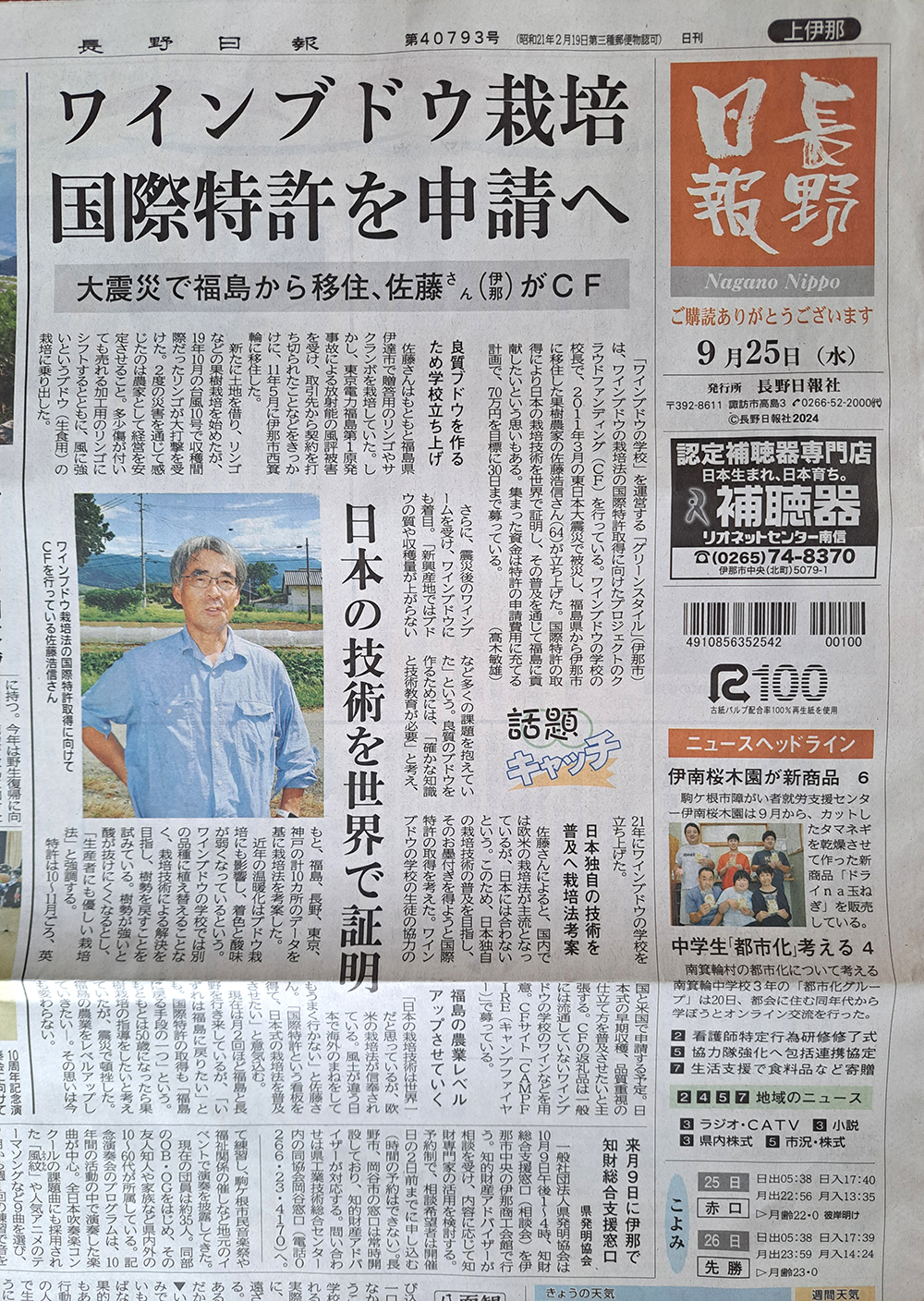 - ●2024年 ワインブドウ栽培法の国際特許申請
